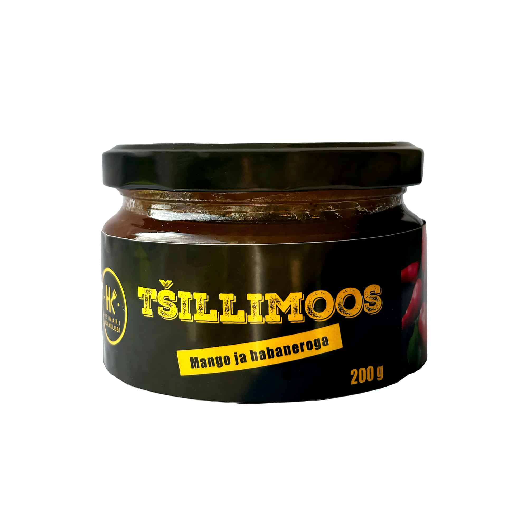 Chilli jam with red chilli peppers, mango, and habanero.